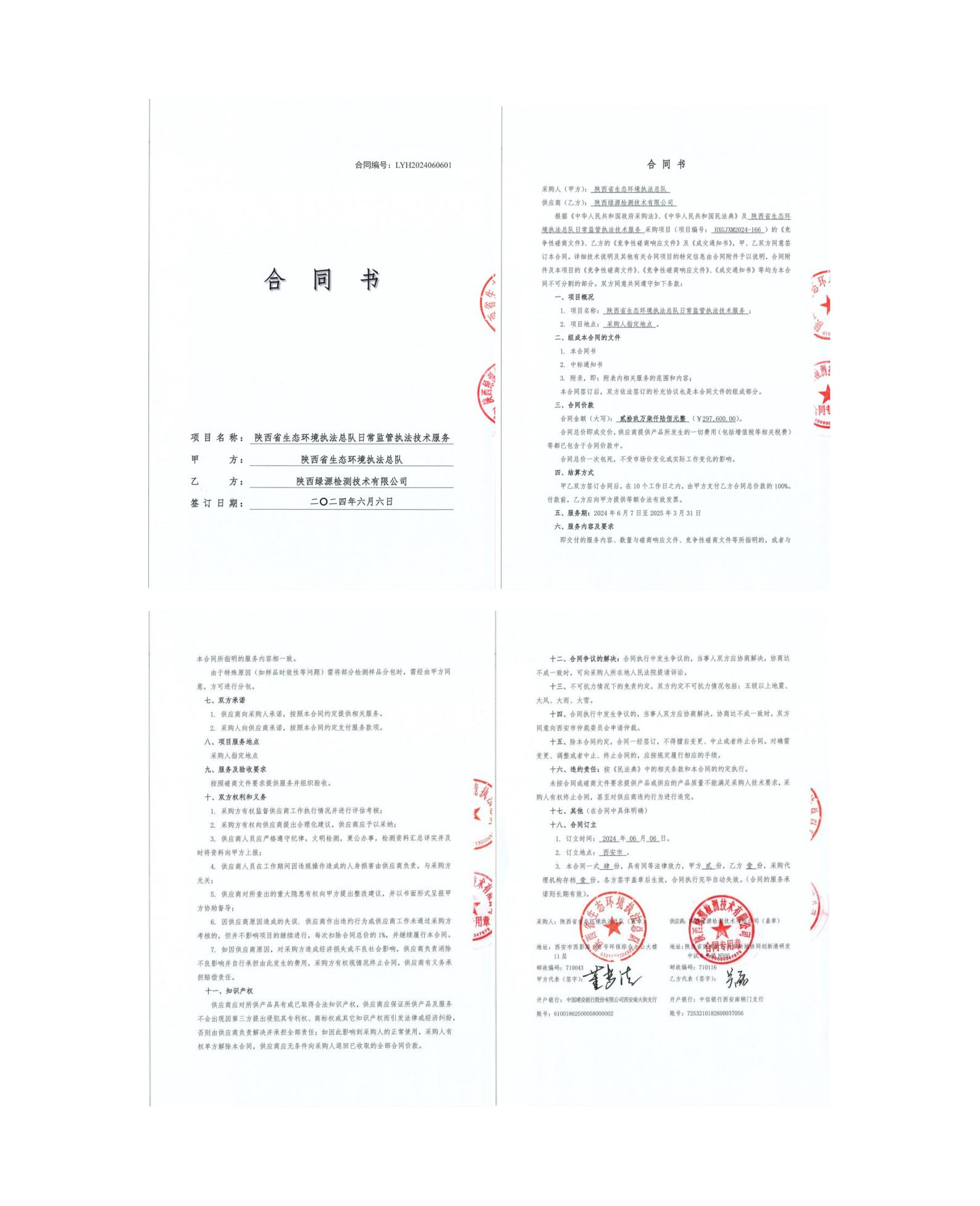 陜西省生態環境執法總隊日常監管執法技術服務合同